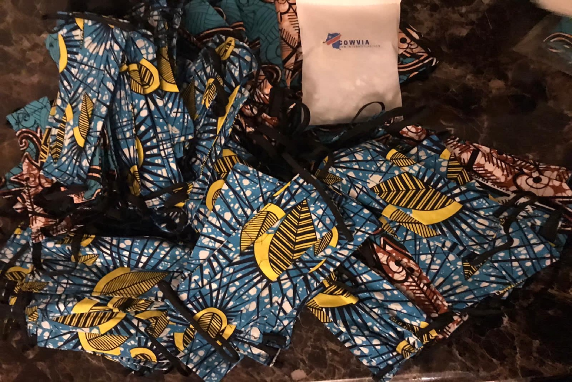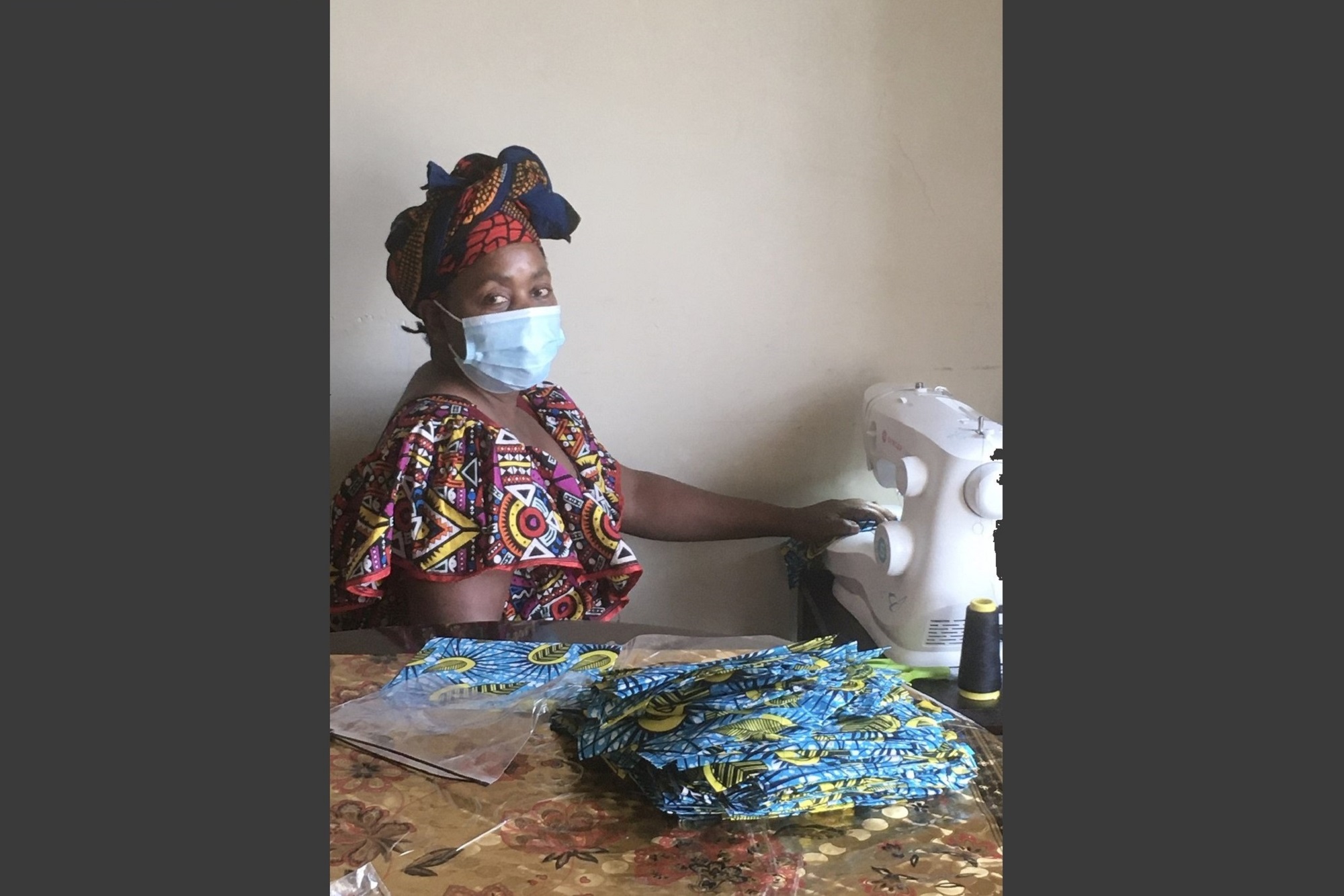 Zabibu Tamasha fabricating masks for the event.